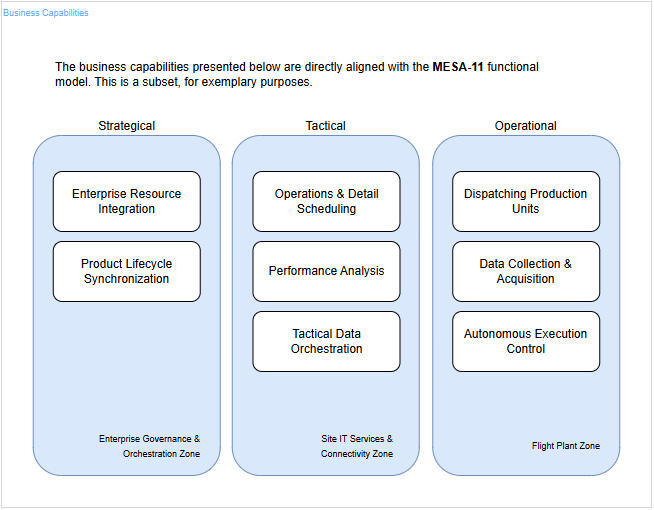 In this architecture, Business Capabilities represent the "what" - what is the target organization (f.e., an airport operator) able to do to achieve its strategic goals. They are the stable, core building blocks of the business that remain consistent even as the underlying technology or specific processes evolve.